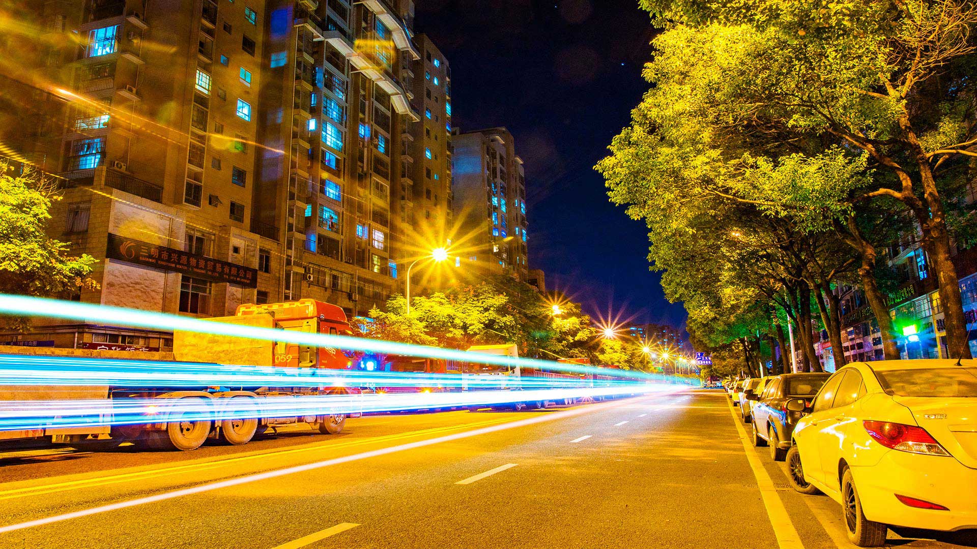 明海鑫專業鋼材交易市場,裝貨發車車水馬龍景象。